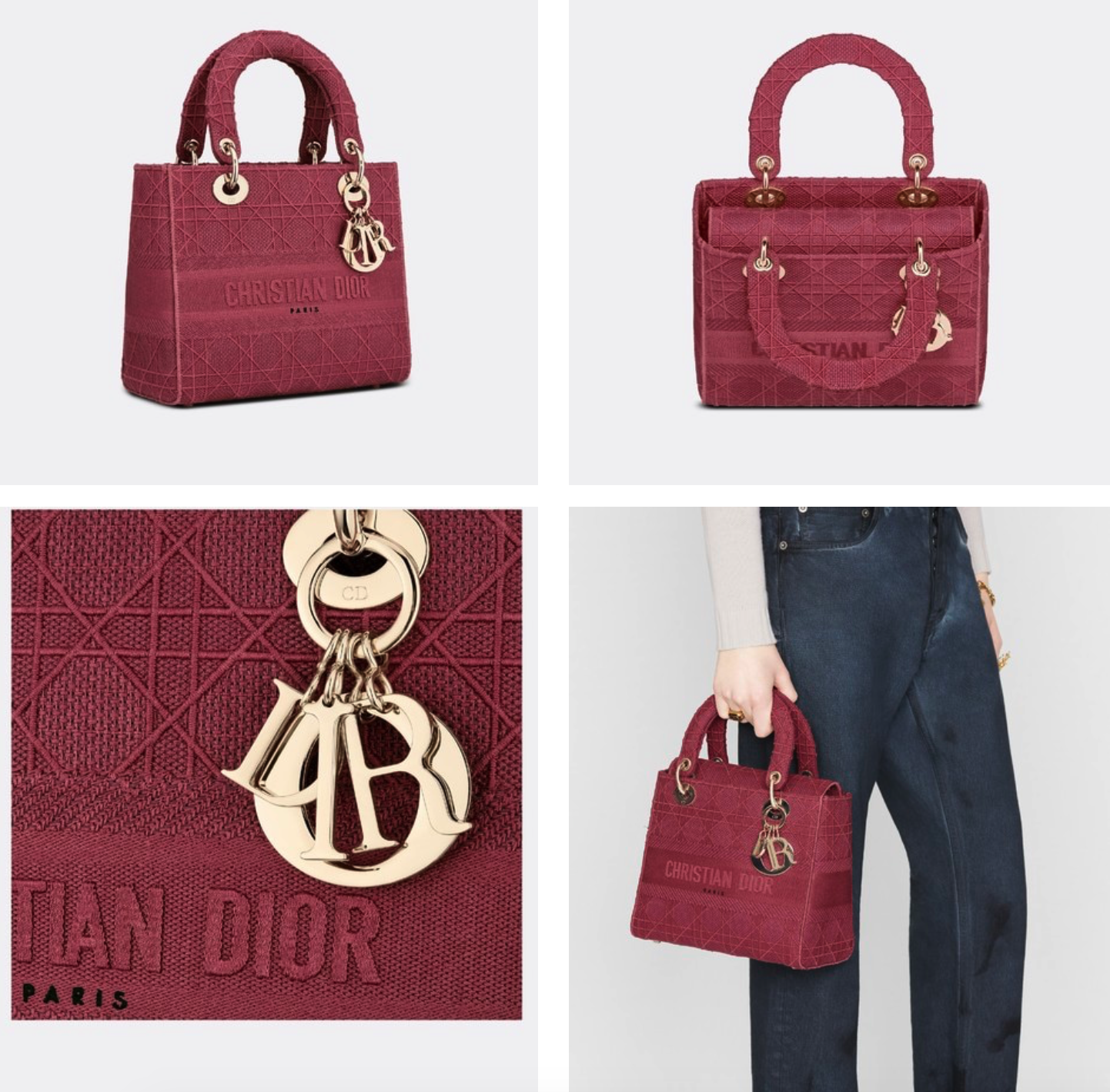 帶有 Lady Dior 的優雅感覺,加上 Book Tote容易配搭!而繼暗黑風的黑色、以及淡淡的奶白和經典玫瑰粉色後,今回將加入近年超流行的霧黑牛仔藍以及仙氣酒紅色!
