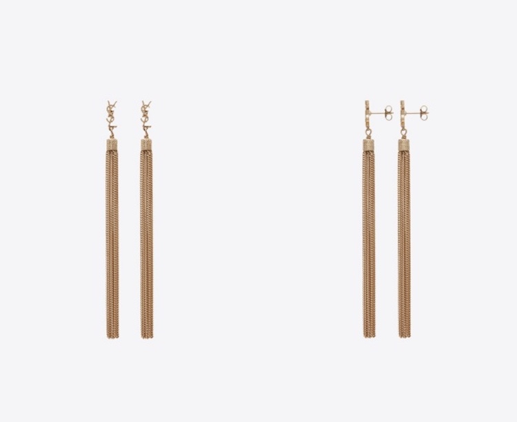 在新一季中品牌亦推出了復古縮寫字樣的耳環,以黃銅的色彩詮釋,展現品牌奢華迷人的氣息,搭配經典的 YSL Logo 及流蘇的設計,不僅可修飾臉型,更完美將 Saint Laurent 想帶給女人的帥氣姿態做了最好的呈現。