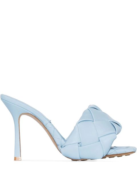 Bottega Veneta BV Lido藍色編織皮革高跟涼拖鞋