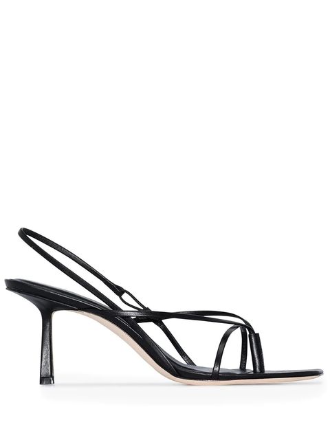 細帶高跟涼鞋造型變化十足,搶眼的細帶設計纏繞在腳背上,顯得性感又充滿活力。