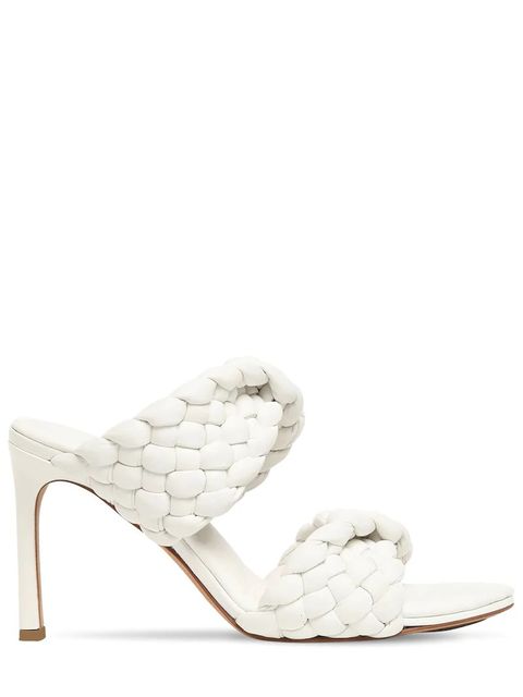 BOTTEGA VENETA白色編織皮革高跟涼拖鞋