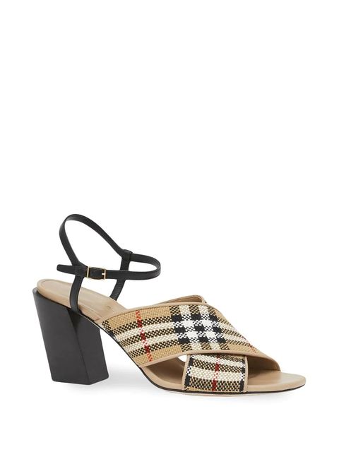 Burberry方格皮革粗跟涼鞋