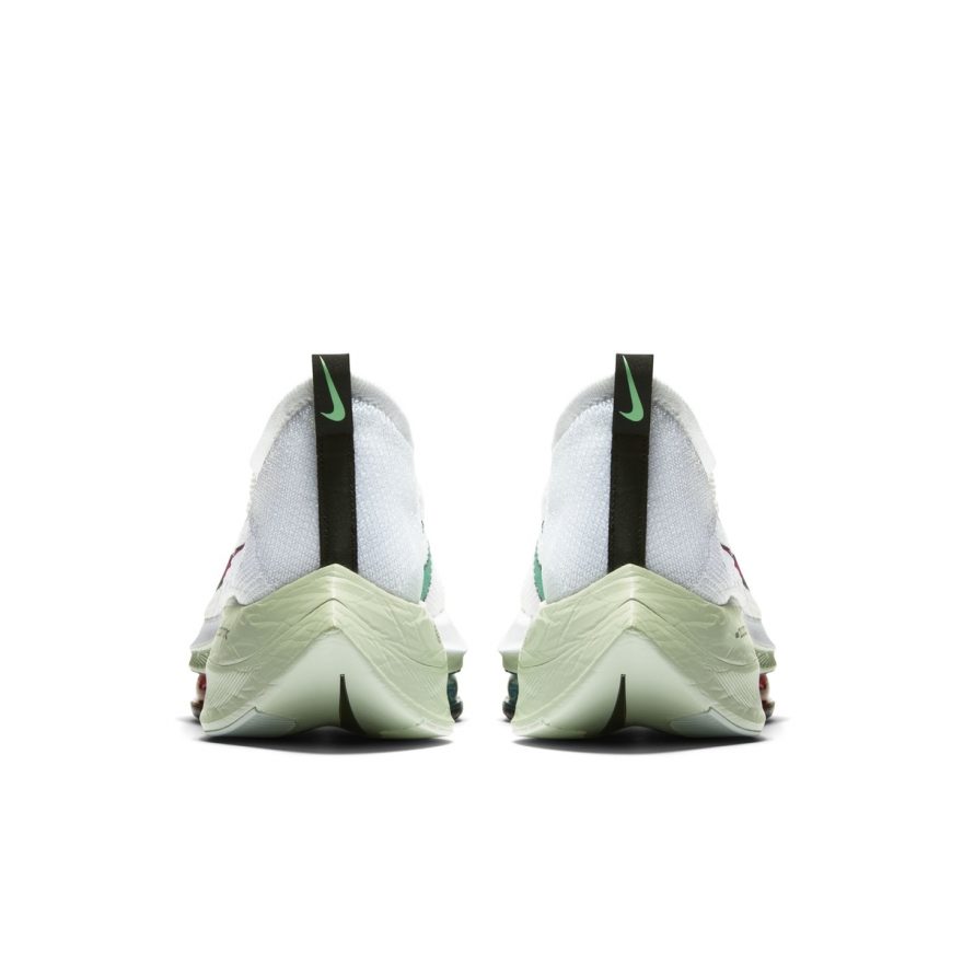 Air Zoom Alphafly NEXT% 首款配色為黑色 / 螢光綠,目前鞋款僅開放符合條件之消費者購買,不過其實早在首款配色發售前,本次的白色版本早就曝光,職業跑者 Zachary Levet 已先行上腳了該款配色。也由於鞋款有著白色、紅色、綠色搭配,外媒給他封上了「西瓜」的別稱,清爽的配色也與夏日特別搭。