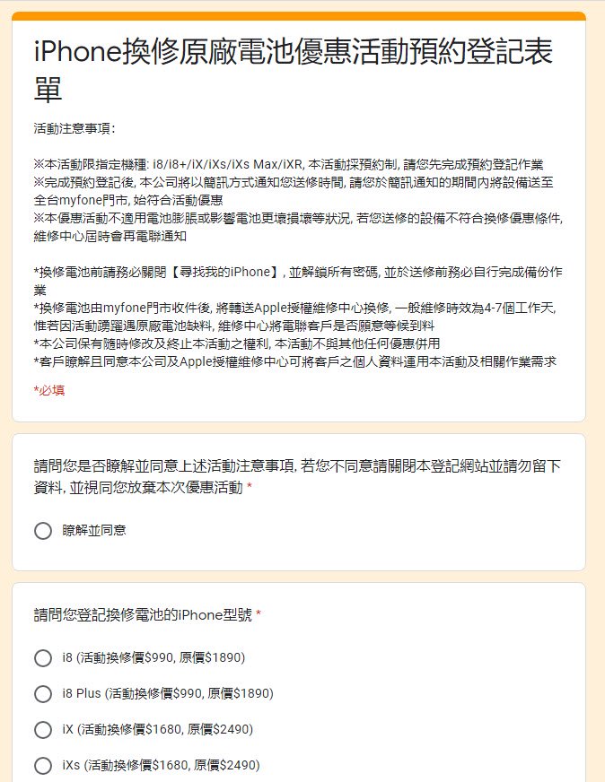 如果以更換原廠電池來說,iPhone 8/8 Plus的使用者時間較長,優惠換修價$990為原來的5.2折其實還蠻划算的,不論如何,若是想參加「iPhone原廠電池優惠換修」活動,除記得在時間內登記外,換修電池前須關閉【尋找我的iPhone】並解鎖所有密碼,且於送修前自行完成備份作業。
