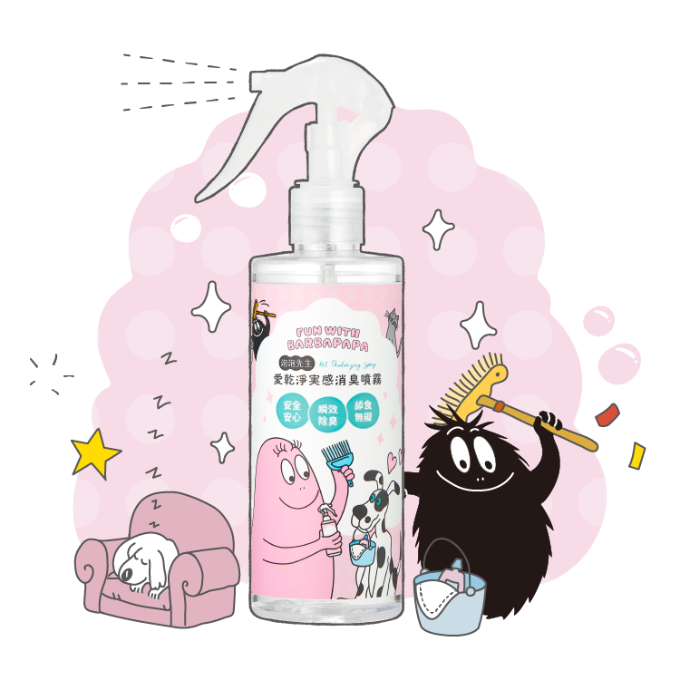 瞬效分解臭味分子,消除尿味、狗味超有感,成分天然、無毒、無香精的消臭噴霧,不用擔心噴在家中毛孩誤舔誤食,想噴哪裡就噴哪裡!