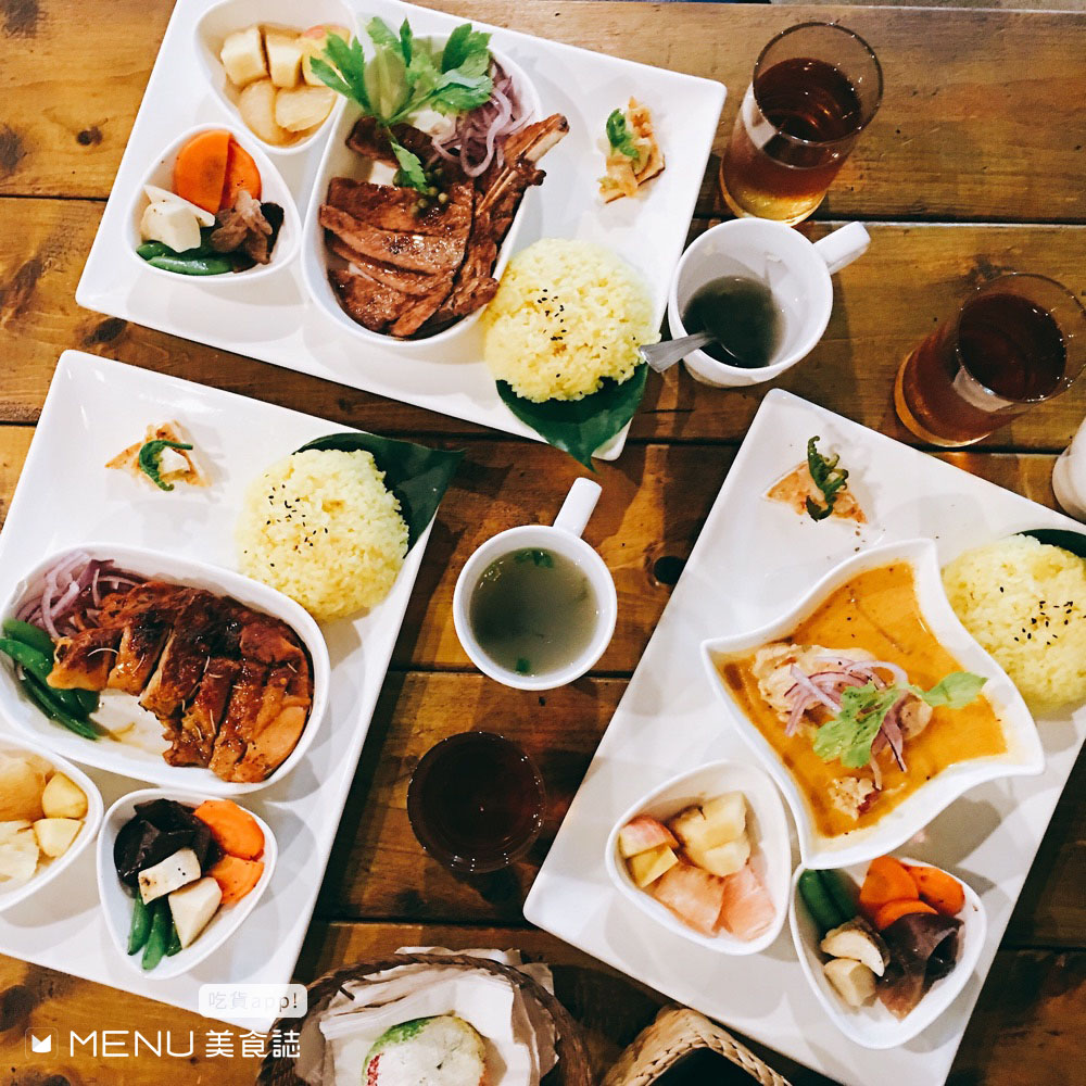 這裡最有名的就是蘭嶼風味餐,有飛魚干、羊肉、山豬肉三種選擇,附上沙拉、芋頭或地瓜、水木耳、八腳魚、白飯、湯、飲料、甜點,每一樣料理都很有特色!