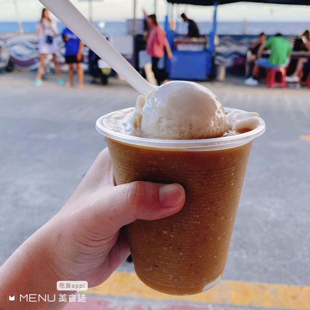 哈士奇陪你吃冰!這碗焦糖煉乳刨冰點餐率超高!濃郁的牛奶糖醬淋在刨冰上,甜而不膩;另外將蘭嶼特產芋頭加上牛奶、鮮奶油、蛋黃,成了一球球手工冰淇淋,也值得一吃!