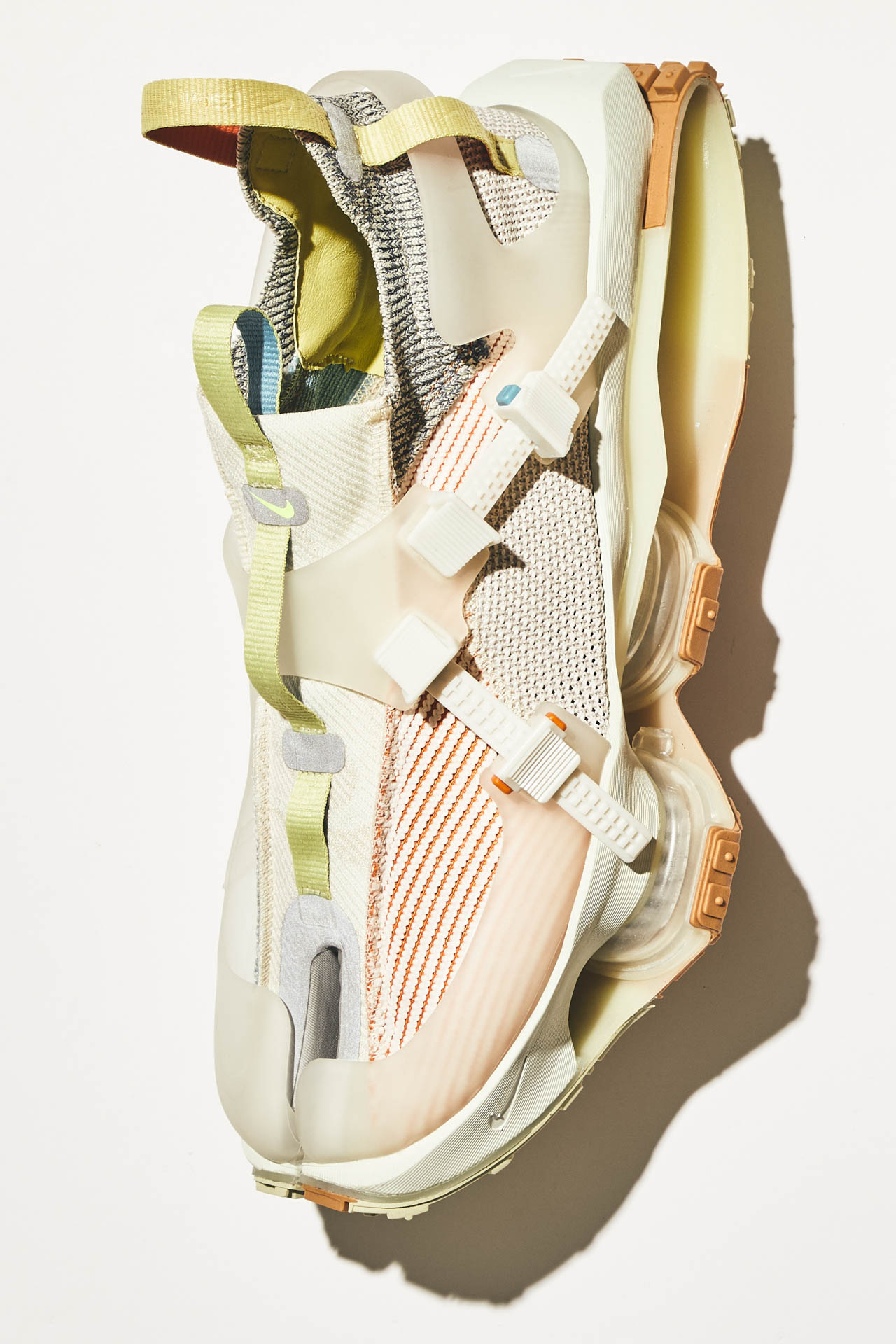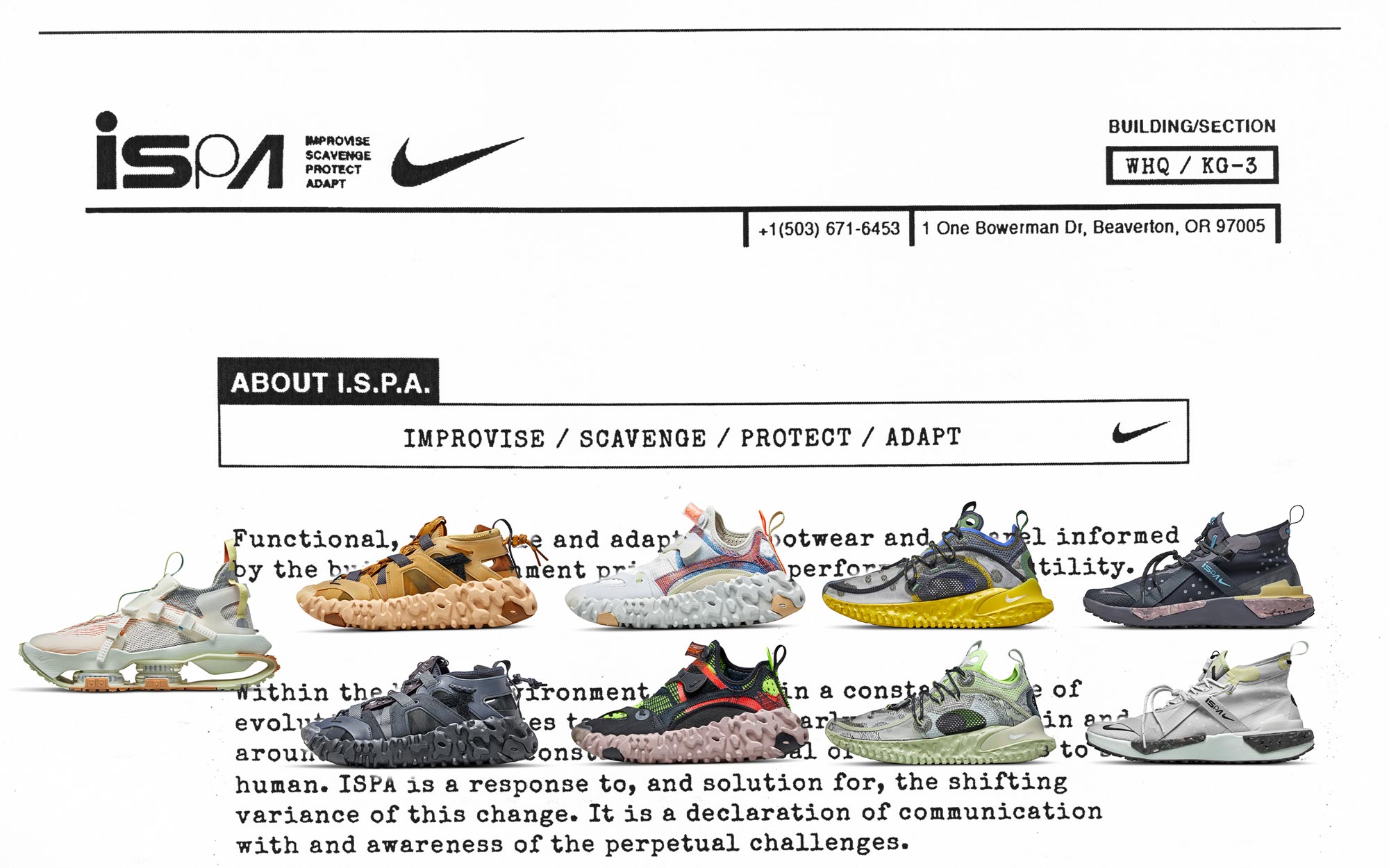 這次的專訪,我們透過了 NIKE 專設的 ISPA.LIVE 網站在線上完成,何嘗不也是在顛覆著既有的製作流程。在 ISPA 這四種特質之中,有如尋寶一般 SCAVENGE 理念也讓人特別有共鳴,英文直譯的意思為 “search for and collect (anything usable) from discarded waste.”,講直白一些,就是從剩料之中打造美食,魚頭或內臟在不同地區都被視為巷子內行家才懂得的珍饈,今日的壽司醋飯也曾是為了醃製昂貴漁獲的耗材,然後藉由嗅覺敏銳的人們,才得以找出重現資源的製作方式;像是 OVERREACT 身上的編織結構還有源自 Nike Vapormax Flyknit 2 ‘Random’ 結合 Knit 剩料的材料運用(因此 ISPA 的配色還有生產數量都受到限制),或是讓 ZOOMX 泡棉得以獲得再製運用的生產流程,都讓廢料剩菜不再只是被束之高閣,NIKE ISPA 系列以勇敢迎向市場的方式實踐 upcycle 的現實挑戰。