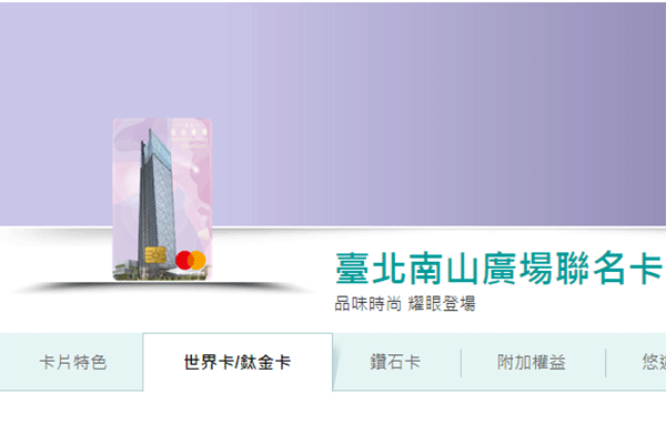 活動期間內,首次申辦玉山銀行臺北南山廣場世界卡/鈦金卡成功享以下優惠: