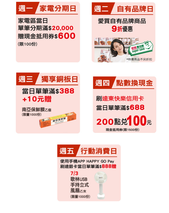 活動期間內,持遠東銀行信用卡至愛買量販店,即可享以下優惠: