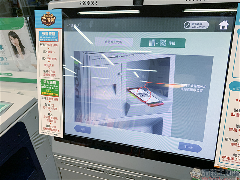 此時螢幕會提示民眾將手機開啟掃描條碼,並置放於掃描區顯示位置: