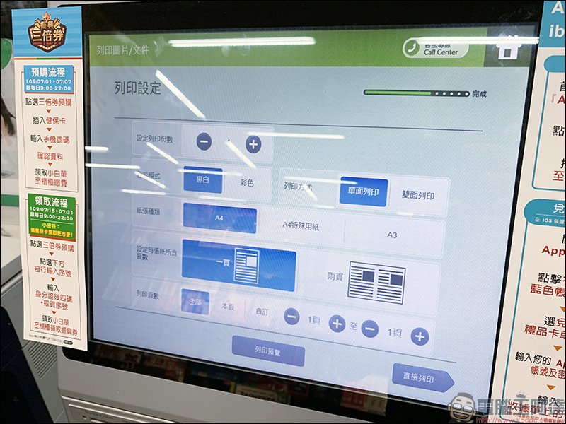 接著再列印設定可依照需求選擇列印份數、色彩模式(黑白/彩色)、列印方式(單面列印/雙面列印)、紙張種類(A4/A4特殊用紙/A3)、列印範圍等設定,確認無誤後便能點選右下角的「直接列印」: