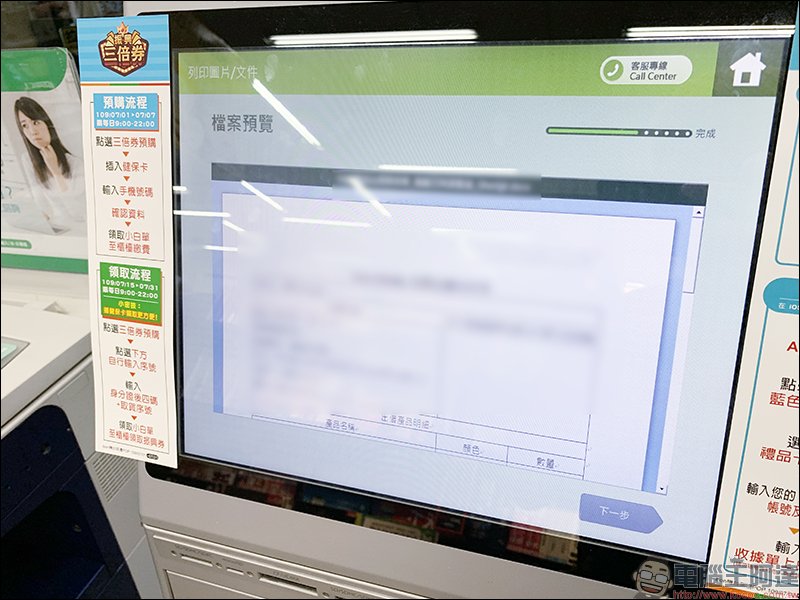 如果這筆 ibon 雲端列印有多筆文件,此時畫面會顯示多個圖片/文件檔案(一次最多可選 8 個檔案)。不過筆者這次只有上傳單一文件,因此畫面會直接顯示檔案預覽頁面,去認內容無誤後,點選螢幕右下角的「下一步」: