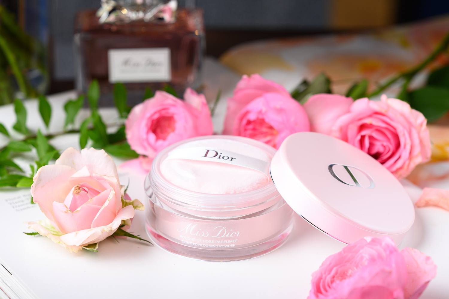 味道則挑選最熱賣的花漾迪奧淡香水,絢麗的「大馬士革玫瑰」和「牡丹」香氣散發一種溫柔的小女人味,蜜粉中還有細緻的珠光,特別適合使用在鎖骨、前胸、肩頸的位置,讓肌膚透出迷人光澤。