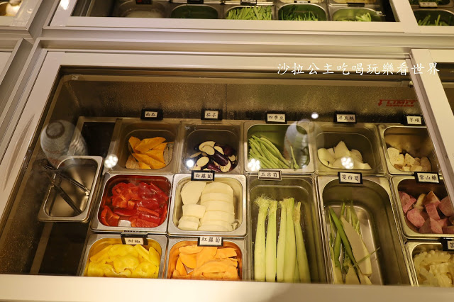 兩大排的冰櫃霸氣排開,海鮮、肉品、各式時蔬、火鍋料,提供上百種的食材