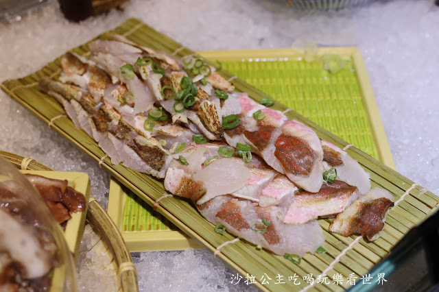 除了需要煮的食材很厲害外,『嗨蝦蝦百匯鍋物吃到飽』有別家火鍋店吃到飽沒有的"生魚片"吃到飽