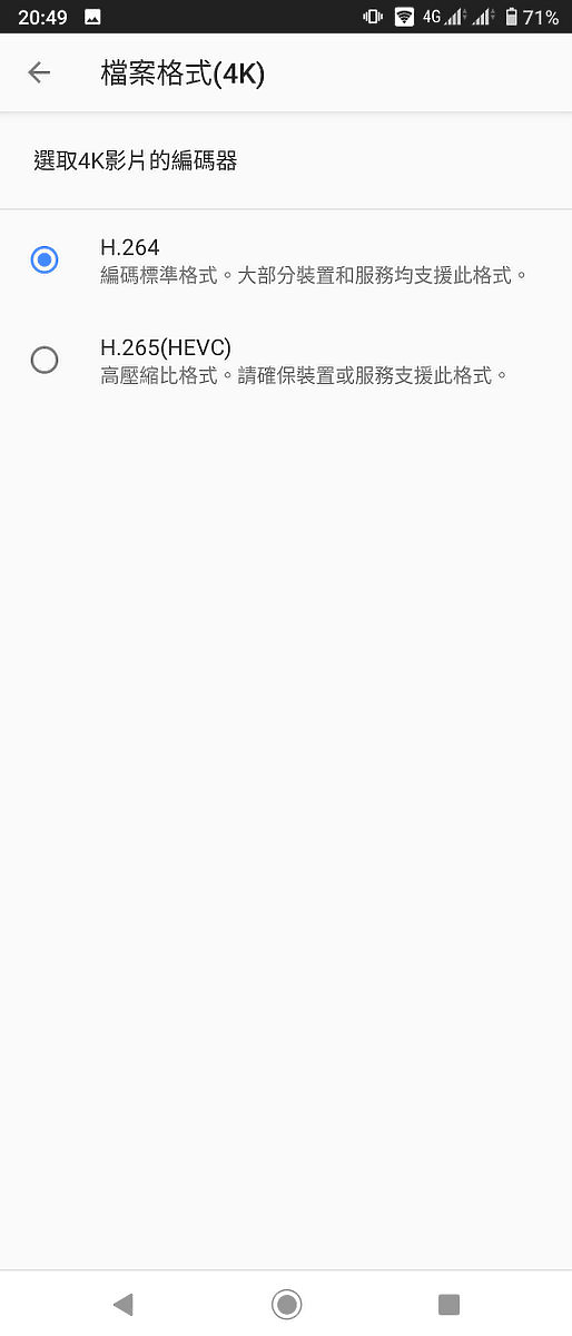 影片錄製的部分支援4K影片錄製,可以到設定內調整畫質與檔案格式