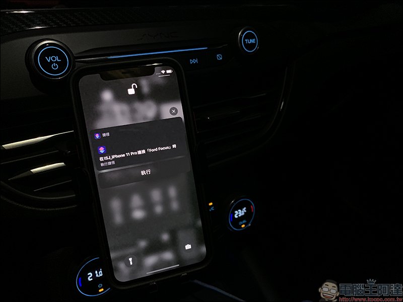 自動化操作設定完成後,當 iPhone 連接車輛藍牙裝置時, iPhone 畫面會自動開啟執行捷徑的建議,此時只要點選「執行」即可自動開啟 App :