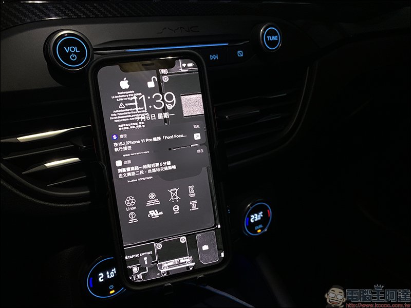 上車後手機畫面的操作流程依序如下,首先在發動汽車並完成藍牙連接時,手機畫面會出現以下提示: