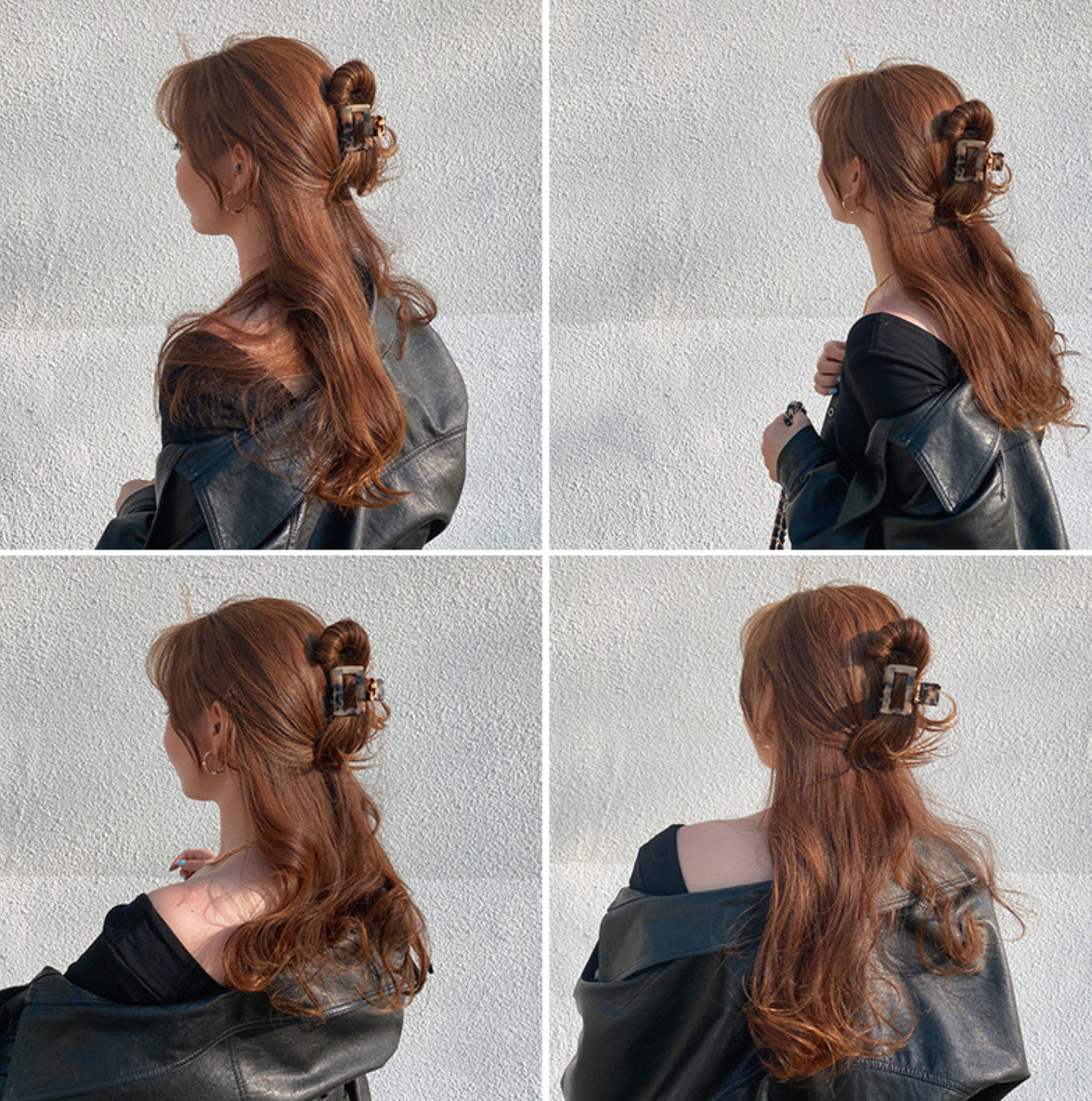 最近的炎熱的天氣,最適合的就是全盤的造型了,也是最多韓妞都會綁的一款造型,髮量如果比較多的人,就會建議買大一點、爪子比較深的鯊魚夾,才能把頭髮全部夾起來,把頭髮全盤起來後整體看起來清爽又隨性!