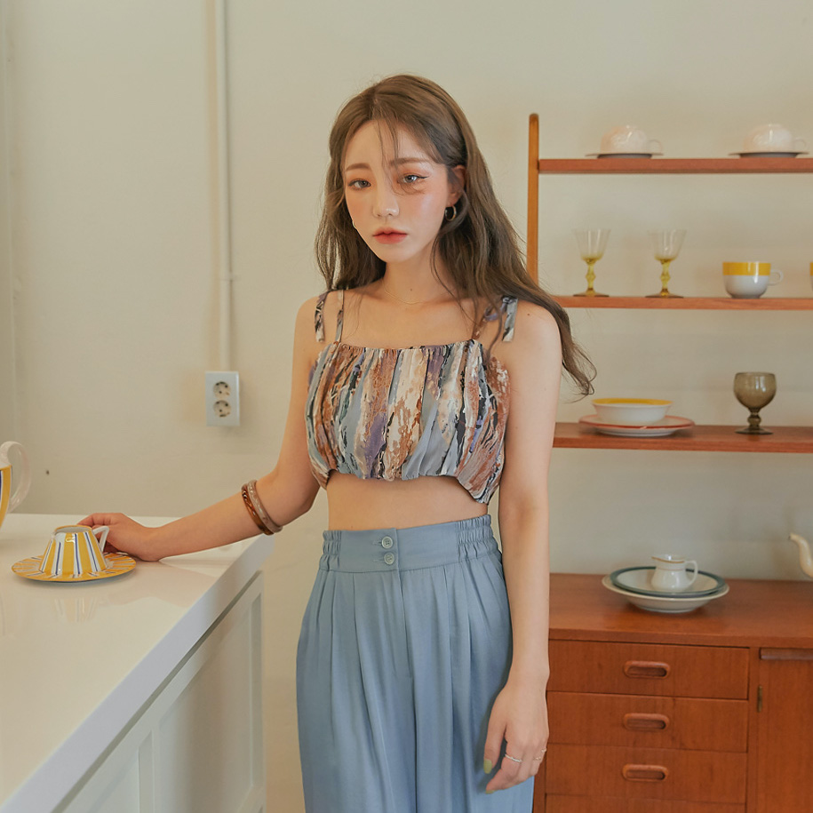 此類背心可以單穿,或是在內加一件素色T恤,隱隱散發甜美可愛的氣息。不過如何選擇也是門學問:細肩帶、褶皺縮口傘襬、寬襬短版背心,首先掌握這三點去嘗試準沒錯!