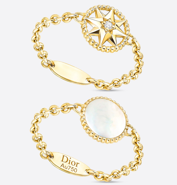 迪奧珠寶創意總監-Victoire De Castellane,以風玫瑰造型重新演繹這顆為迪奧先生帶來幸運的「八芒星」。可翻轉式的珠寶設計,一會兒翻轉出硬寶石的一面,一會兒翻轉出風玫瑰的一面,正反兩面各有風情。這個可供日常佩戴的「Rose des Vents」珠寶系列,就如一枚珍貴的護身寶符般,一如此這系列的主打精神-「願能將幸運每日隨身配戴,成為妳紀念每一個重要時刻的日常幸運符!」