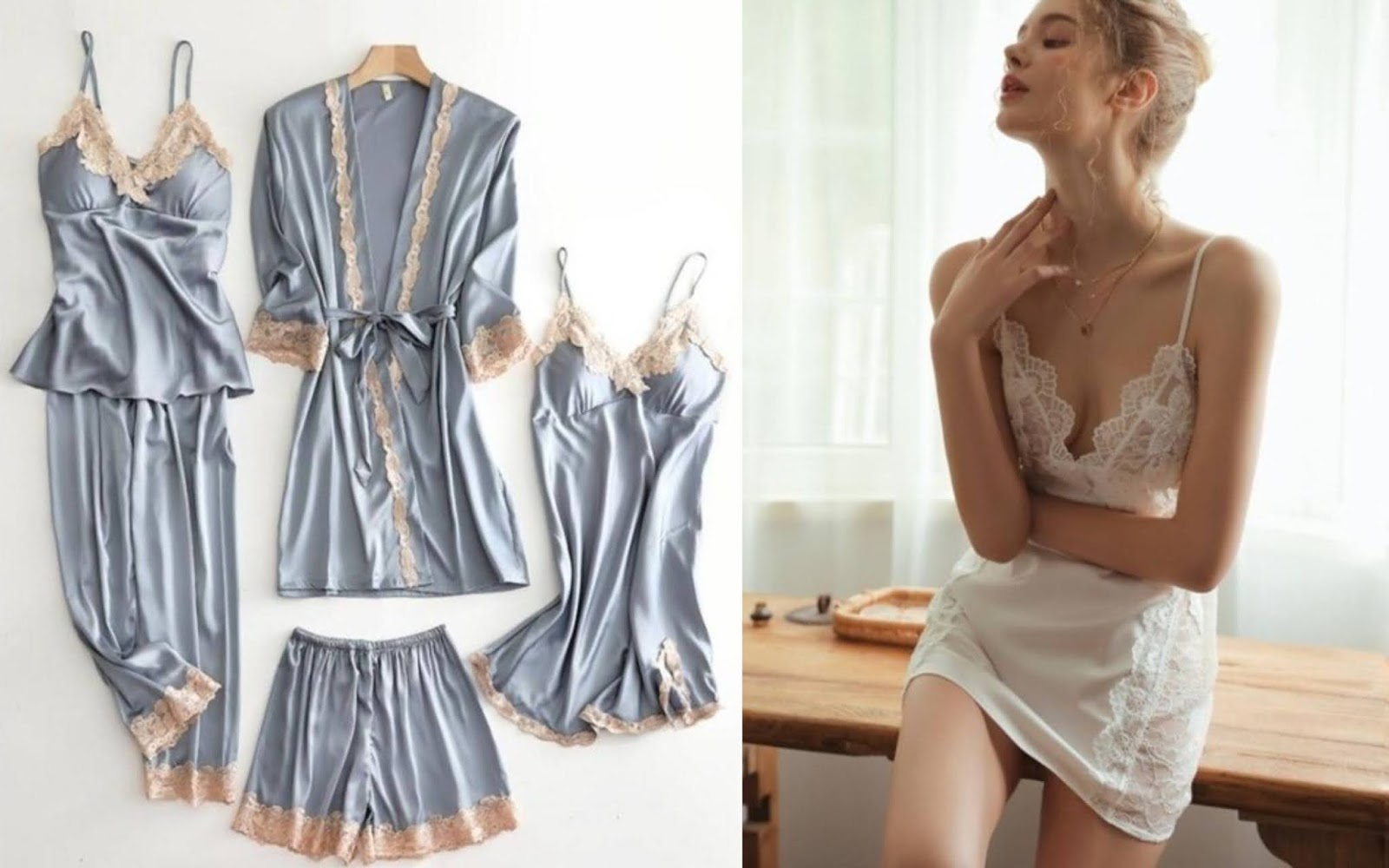 這款可說是CP值報高款了!睡袍、長褲、短褲、上衣、洋裝一應俱全,對於追求「成套感」的女孩,絕對是一大福音~而且這款上衣皆有附上胸墊,不習慣沒穿內衣的女孩完全不用擔心,材質選用帶有點光澤的絲綢面料,讓肌膚享有最柔滑、舒服的觸感。