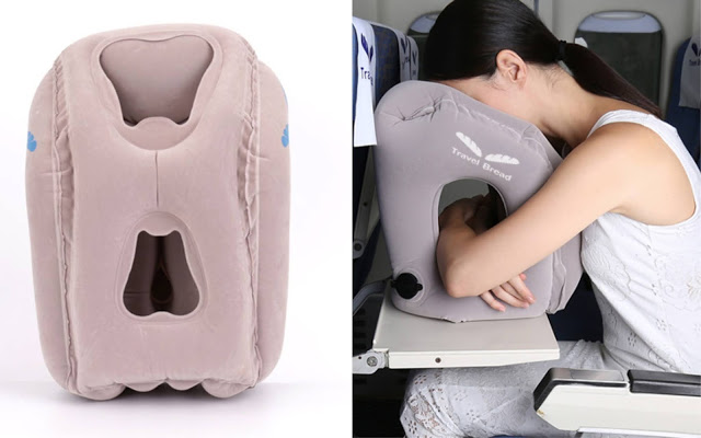 被同事看到睡覺表情好尷尬嗎?連帽設計除了幫你遮住害羞睡相,也不讓呼吸有壓迫感!辦公室有冷氣吹頭的情況也能一一克服。另一戴法 就是將頸枕部分拆下變成符合腰背曲線的靠枕,自然能讓頸椎省力許多,尤其U型枕中的填充物為顆粒自由度高、能適應各種狀況,達到身體最舒服、省力的情況!午睡枕推薦5|充氣便攜趴睡枕