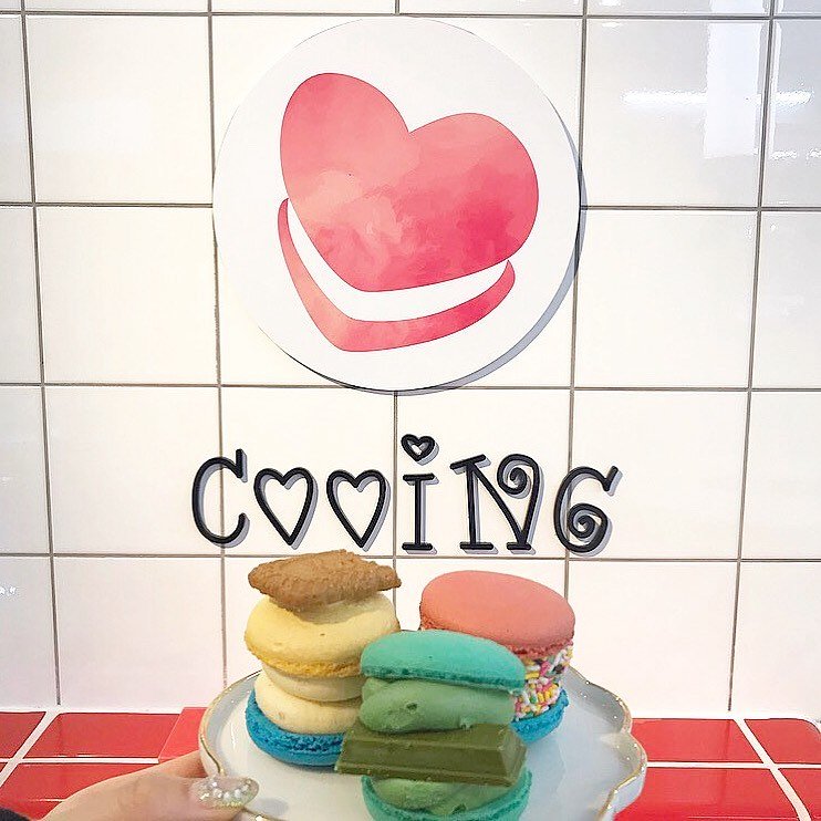 位於東京澀谷的「COOING」同樣也是一家韓系馬卡龍專賣店,店內的風格採用白色磁磚搭配紅色旋轉椅點綴,雖然稱不上華麗但卻不影響其人氣。這家店的馬卡龍每日現做,且會一一展示在透明櫥窗櫃裡讓客人挑選,除了一般常見的法式圓形馬卡龍之外,還有許多令人感到驚喜的限定款。