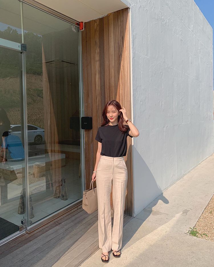 試試挑選淺色系9分褲!露出腳踝的設計,比寬褲在視覺上更能優化身形比例,淺色系也讓整體穿搭透亮清爽。