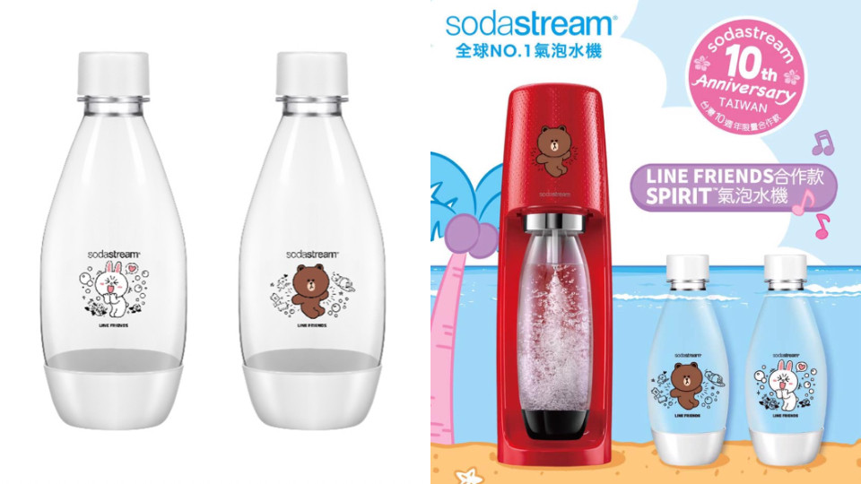 炎熱的夏天不想喝太多飲料,怕胖又想消暑解渴?「氣泡水」絕對就是你的最佳選擇!氣泡水機品牌 Sodastream 本季不僅推出全新質感配色,更與「LINE FRIENDS」合作推出10周年紀念「熊大兔兔氣泡水機」,豐富氣泡不僅能補充水分、促進消化,可重複使用的專屬寶特瓶與二氧化碳鋼瓶,更能減少了飲料空瓶對地球產生的負擔!