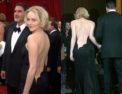 當話題名模Bella Hadid穿上那套紅色開高衩禮服,而受眾人驚呼並因此對她印象深刻,開到如此高衩的設計,莎朗史東也早在九O年代就穿過了。