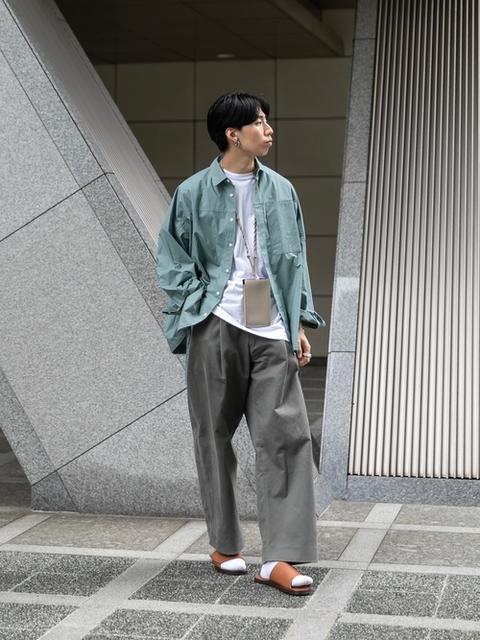 寬感剪裁的長褲早已流行好幾季,利用不同材質布料能營造出街頭、個性、成熟等風格,當想穿搭出聚焦的率性度的話,推薦選擇暗綠色寬褲混搭襯衫,瞬間製造簡約又舒適的大地色 Look 。