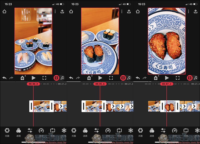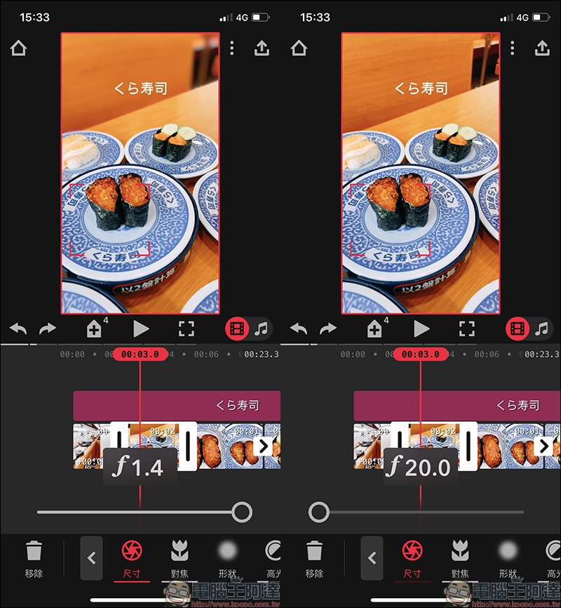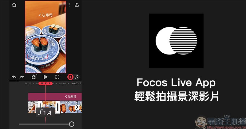 與 Focos Live App 在拍攝照片後調整光圈大小模擬淺景深,這次 Focos Live App 拍攝影片後,也能進入編輯頁面調整大光圈模擬效果: