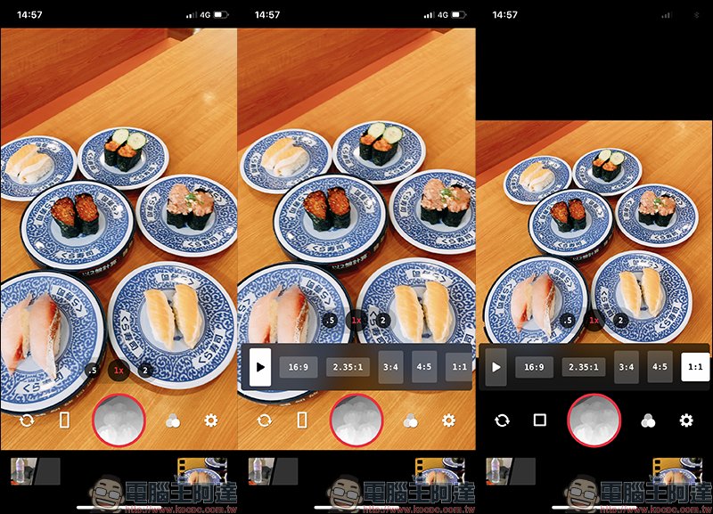 對於多鏡頭主相機的 iPhone 使用者, Focos Live App 支援雙鏡頭、三鏡頭或透過前鏡頭來拍攝帶有景深的影片。針對不同的影片使用需求, Focos Live 內建多種畫面顯示比例: