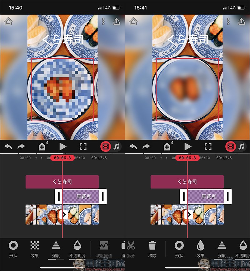 此外, Focos Live 也內建馬賽克功能,用戶可自訂畫面中馬賽克的顯示方式和範圍: