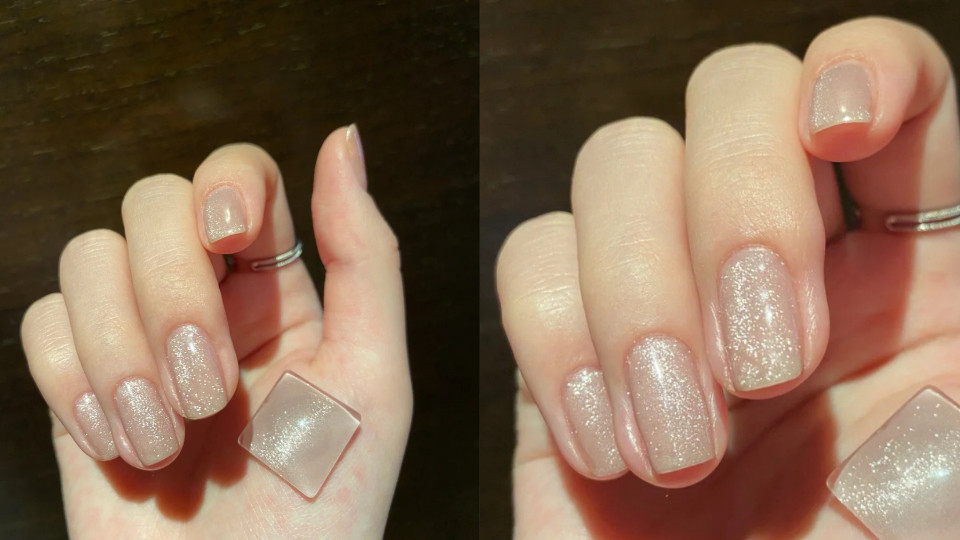 當透明果凍色配上淺色貓眼的閃光,就會變成這樣超有氣質的顏色!因為透明果凍色本身就能讓手只有纖長感,若隱若現的淺色貓眼亮粉也讓指甲藏有小心機,還會隨著光線散發出不同顏色~