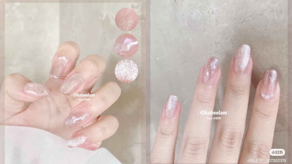 用素色打底完後其實就已經很好看,單純的果凍色美甲也是2020夏日美甲大勢!不過今天的介紹重點是這個「晶石貓眼」,挑選淺色亮粉的貓眼,像是淺粉色、銀色、白色偏光可以~