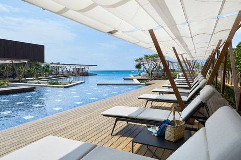 以「打造新的海岸線」做為設計概念,減少對海岸原始生態的影響,客房別墅採低矮樓層設計,同時沿海岸線蜿蜒而建,使建築物與四周的自然環境融為一體,只要稍微靠近窗邊,就能直接感受海風送來的海洋氣息。