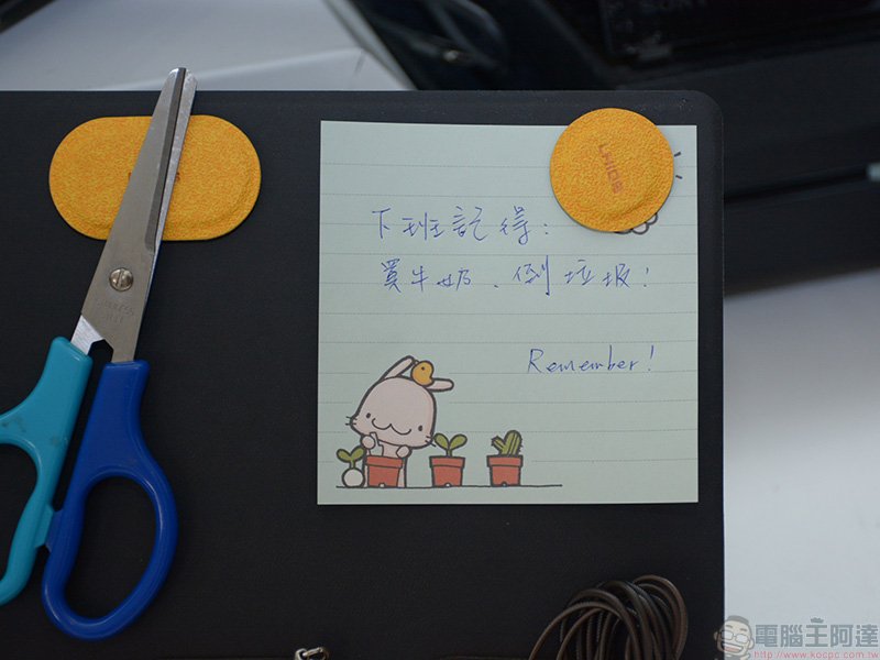 抽屜、辦公室鑰匙要外出時隨手拿、隨手貼,避免要用時找不到。筆者將它用來固定隨時要用的少量便條紙,以備不時之需。