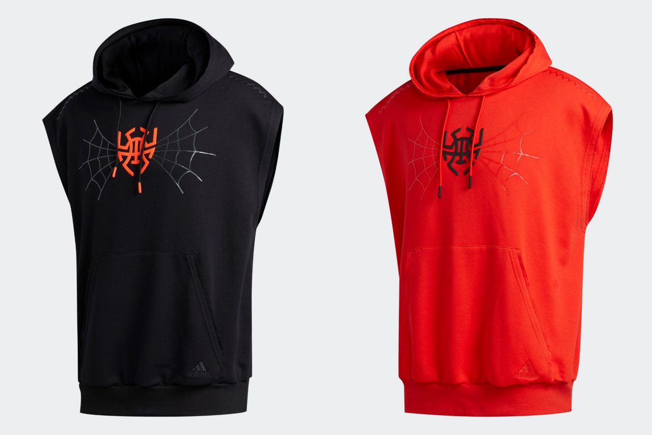 adidas 同步揭曉一系列 Donovan Mitchell 聯名服飾,無袖連帽背心推出經典紅、黑兩色,猶如蜘蛛人自製戰衣,下擺縮口設計拉長整體身形比例,搭配同款棉質短褲,呈現簡約隨興的潮酷穿搭,短袖 T-shirt 則加碼推出綠色款,全系列皆綴以 Mitchell 專屬蜘蛛標誌,充分展現聯名識別度。