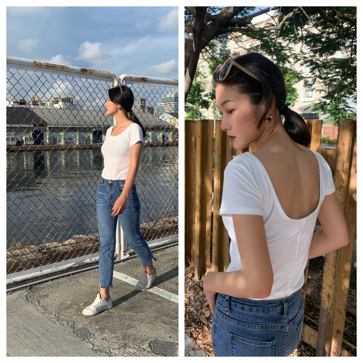 厭倦了傳統的白T?想要嘗試小性感卻擔心太裸露不好搭配?那這款Sexy Back就是你的不二選擇!不但透過貼身版型與裁切充分修飾腰身,後頭大U的深度剛好在內衣排釦上方,完全不需要為了露背而使用nu bra,不用擔心不適合一般場合使用。