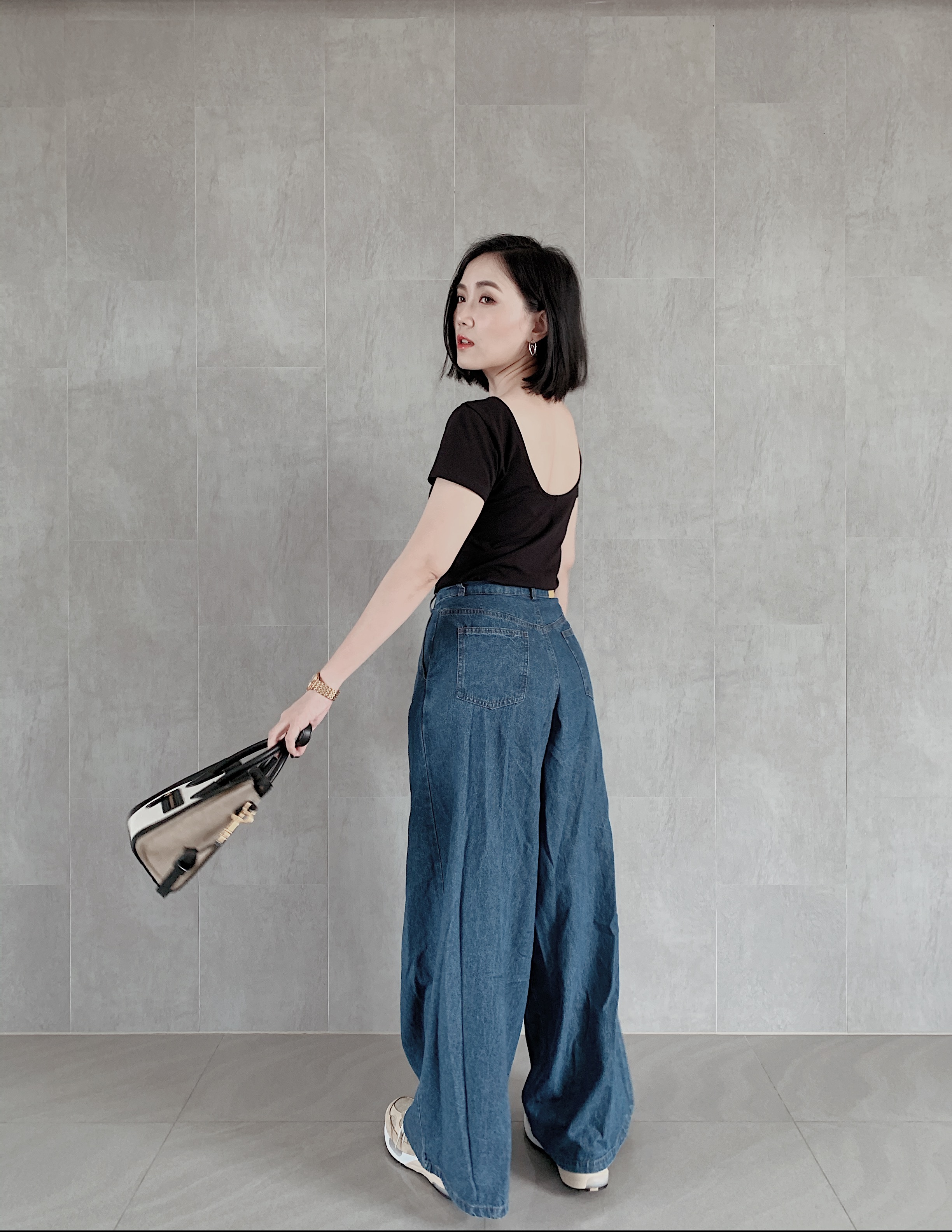 換成黑色一樣好搭!搭配顏色較穩重的長裙。不用加上太多的飾品,就可以輕鬆化為成熟典雅的造型。無論是夏末及秋初,都十分實用的一款穿搭。