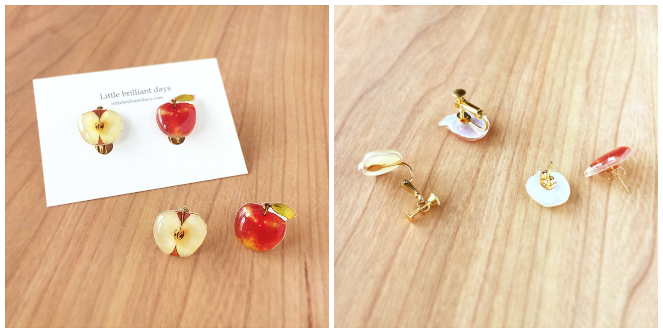 小編自己最喜歡蘋果耳環,如果平常喜歡保守、氣質的耳環款式的話,不妨先從小巧精緻的水果耳環下手,這款蘋果耳環針式、夾式都有,日系感十足的精緻蘋果插畫更添耳環質感。