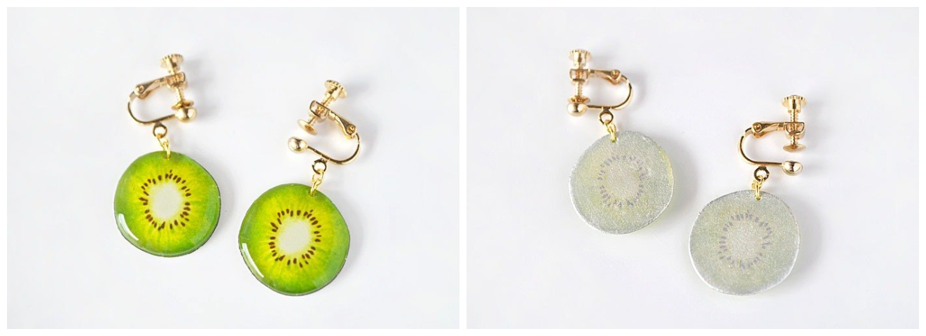 這副奇異果耳環的細節很貼心,即使是耳環背面也不會醜醜的,奇異果插圖也清新細緻,連奇異果籽都處理得很可愛。