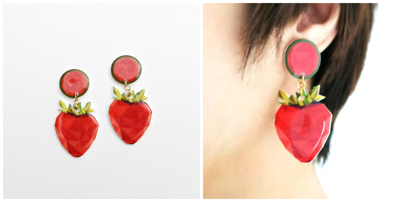 草莓應該算是人見人愛的人氣水果,單吃或做成甜點都有超高人氣,變身成草莓耳環也不例外,超級卡哇咿!紅綠配色雖然有些搶眼,但其實也非常好搭配衣服喔!