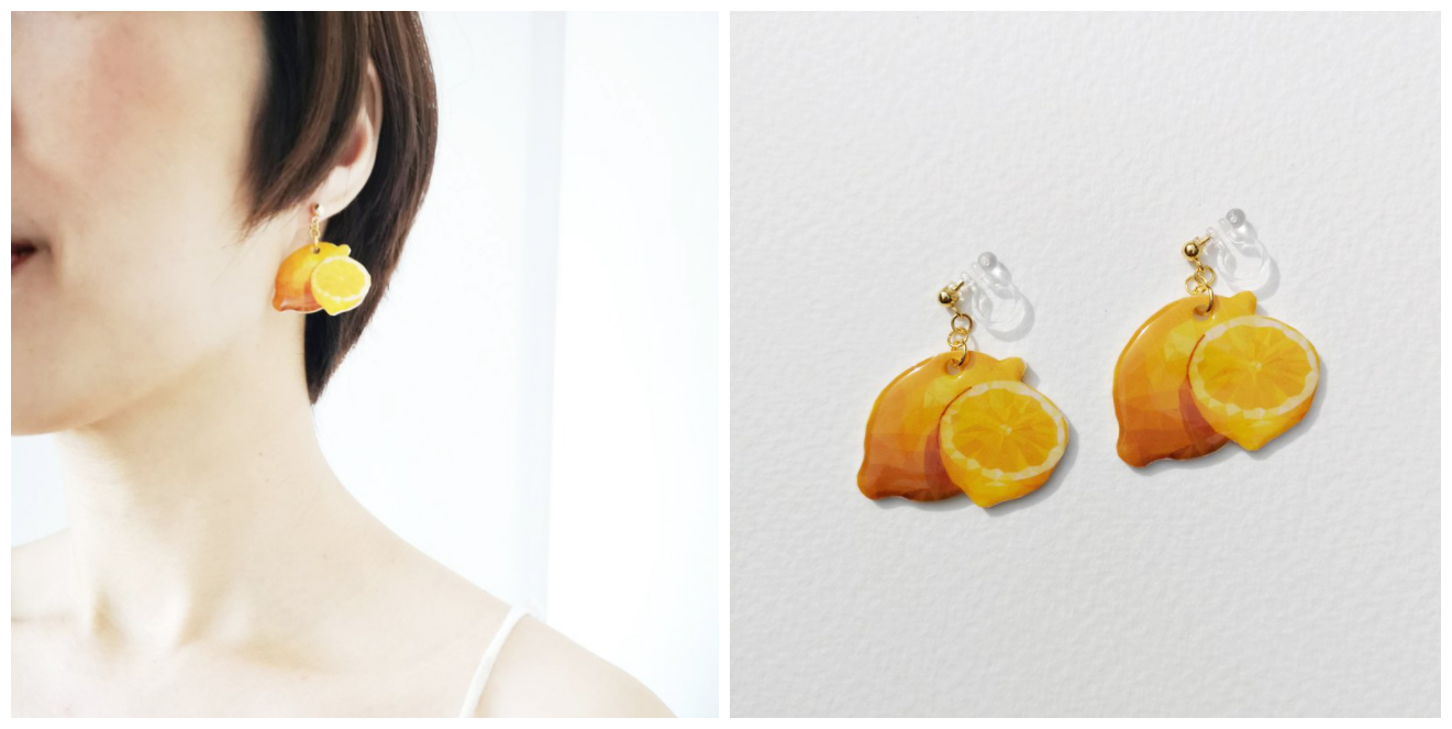 橙黃色系水果耳環|檸檬、梨子、橘子