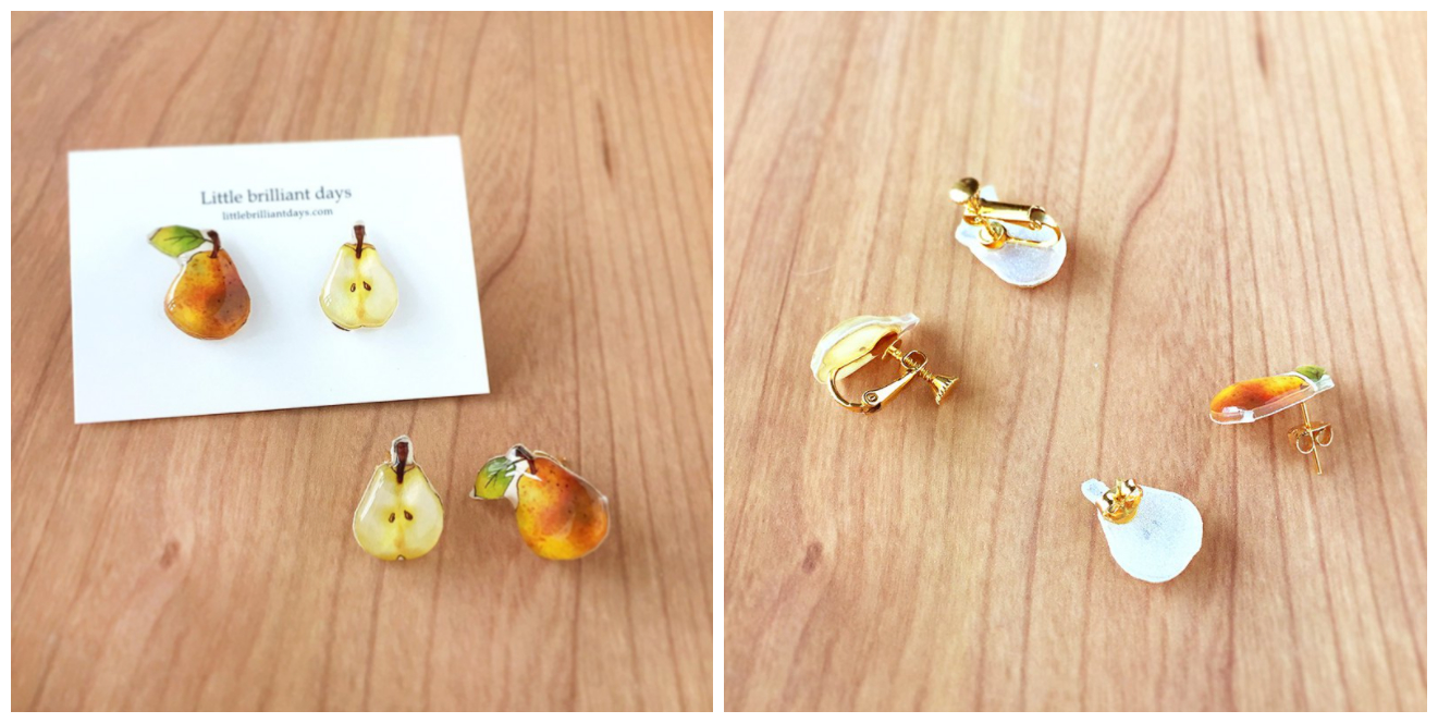 梨子耳環超特別!特別的是這副耳環是不對稱的設計,梨子表面+梨子剖面呈現出可愛的細節,朋友們看到一定會忍不住研究你的飾品。