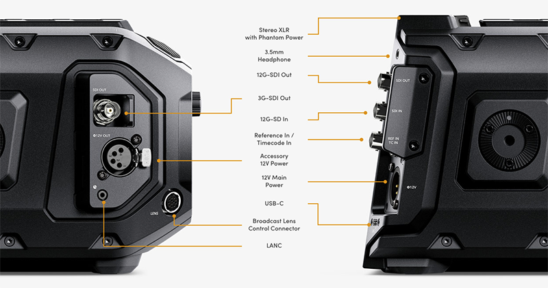 URSA Mini Pro 12K 的推出同時也引入了各種來自 Blackmagic 的色彩技術等 -- 透過他們自家的 Codec,還宣稱在筆電上就能編修 12K 的影片內容(應該也要很高標效能的筆電啦...)。使用上也可以支援透過藍牙無線操控的機能,內建最高減光 6 格的 ND 鏡,可轉接 PL / EF / F / B4 接環鏡頭,更支援像是 Stereo XLR with Phantom Power 等各種專業級的連接介面。
