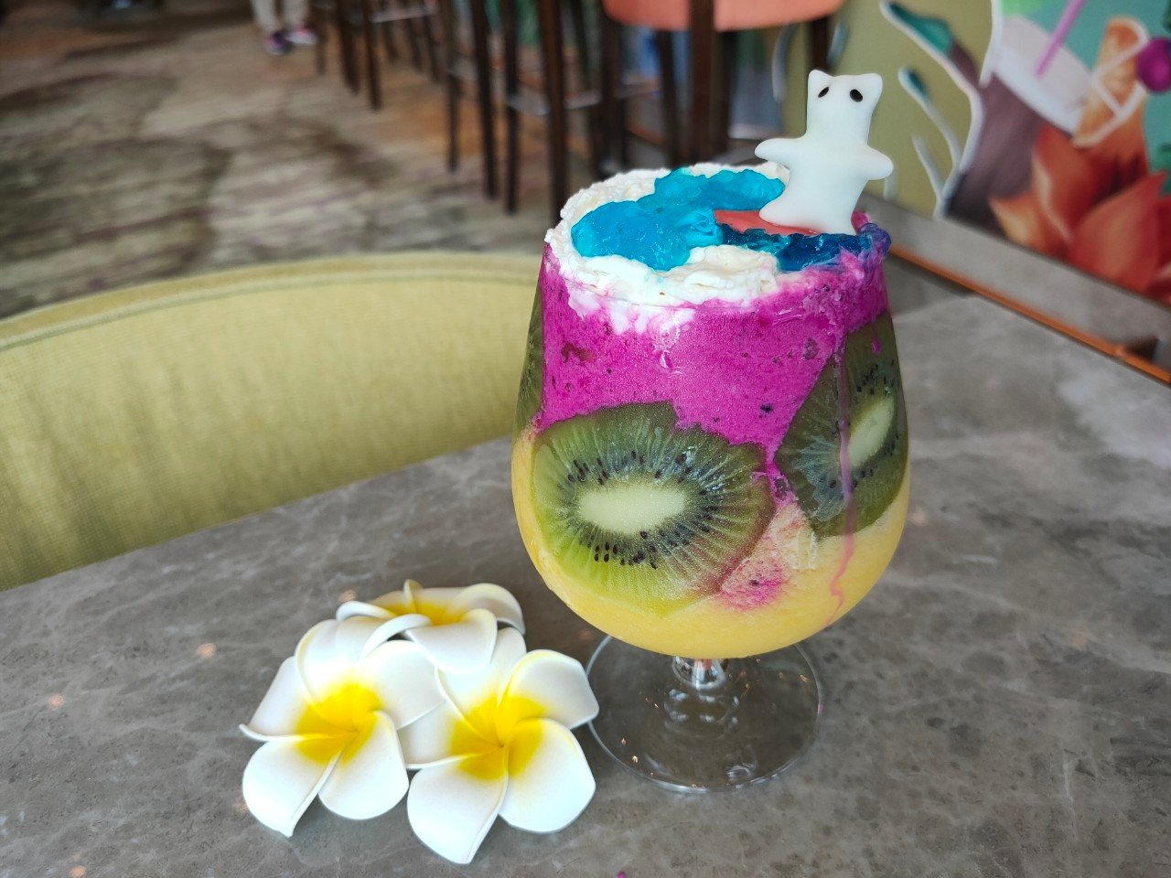 搭配雲朵下午茶的「雲朵咖啡」這一季也將會持續提供,這次還新增了兩款特色飲品和冰品,像是這款「威基基海灘」,就是由夏季水果火龍果、奇異果、芒果組合而成的果昔,有著夏季水果獨有的甜味!上頭還用了藍色果凍營造出點點浪花,讓JC Cat可以在海上帥氣的衝著浪~